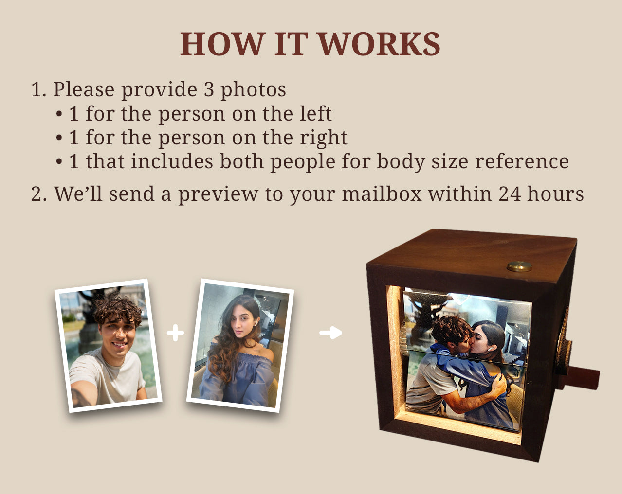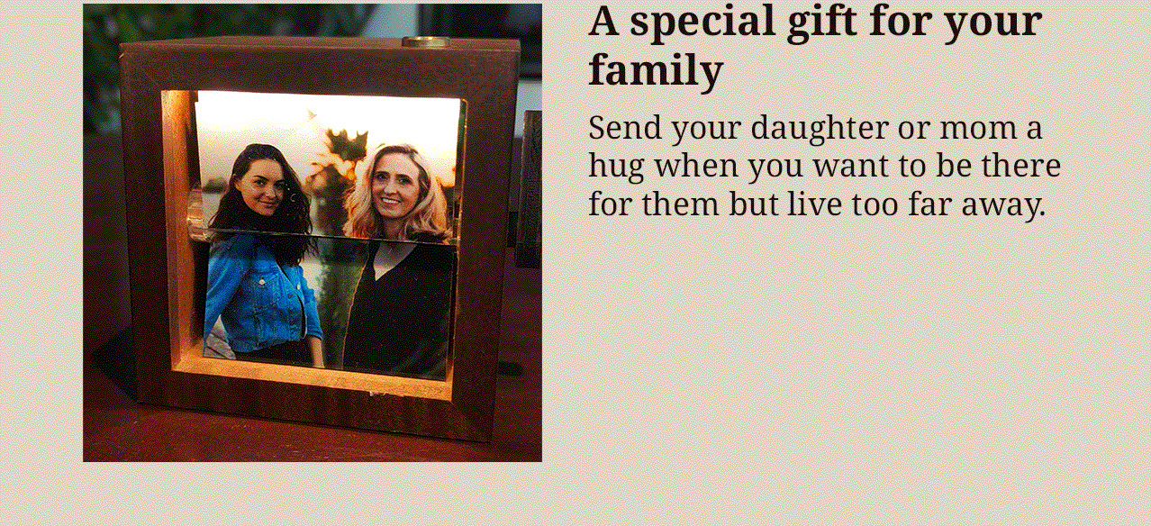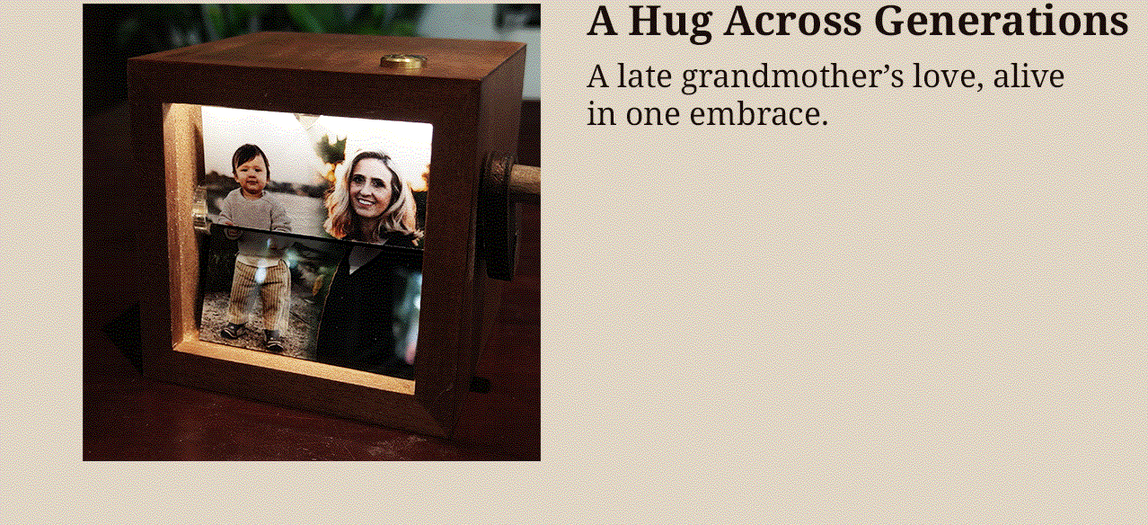 Simply share your favorite photos, and we’ll use our expertise to gently animate them into a hug. Then we place that animation into a handcrafted flipbook, creating a keepsake that brings comfort through every turn of the page.
