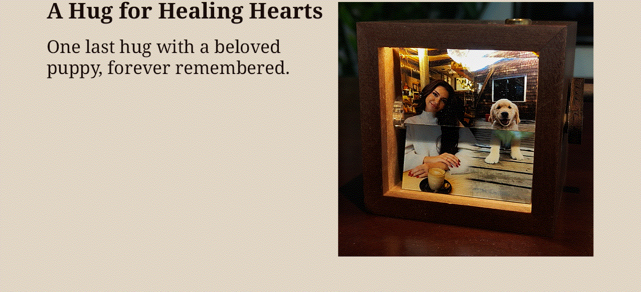 Losing a beloved pet leaves a hole that words can’t fill. With Hugging Frame, you can bring back one last embrace — a tender moment where love lives on.
